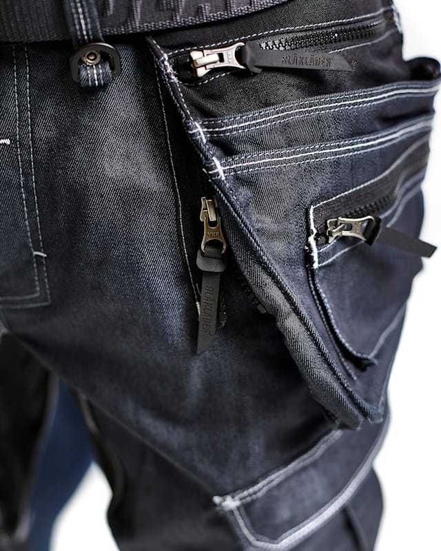 Blåkläder Werkbroek Denim Stretch X1900 is een robuuste werkbroek van Cordura® denim-stretch (340 g/m²) met extra stretch in kruis, kuiten en knieën voor optimale bewegingsvrijheid. De slim-fit pijpen en normale taille passen comfortabel, terwijl top-loading kniezakken uit Cordura® stretch en versterkte tool-, achter- en duimstokzakken ervoor zorgen dat al je benodigdheden veilig én binnen handbereik blijven. Van knielen tot zwaar werk, deze broek doet niet onder qua duurzaamheid. Let op: transferbedrukking wordt afgeraden op denim 1140–1147.