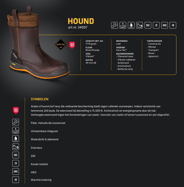Grisport Ranger, Laars, Veiligheidsklasse S3, Overneus, Bovendeel Leer, Voering Gore-Tex®, Zool Vibram® rubberen zool, Bijzonderheden: Antistatisch, Glasvezel neus, Kevlar tussenzool, Offshore, Uitneembare inlegzool. Waterdicht