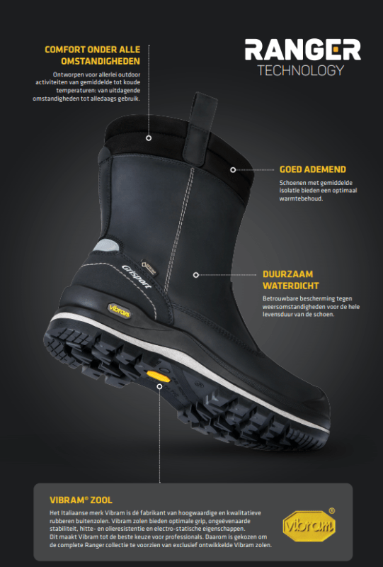 Grisport Ranger, Hoog model, Veiligheidsklasse S3, Overneus, Bovendeel Leer, Voering Gore-Tex®, Zool Vibram® rubberen zool, Bijzonderheden: Antistatisch, Glasvezel neus, Kevlar tussenzool, Uitneembare inlegzool. Waterdicht_x000D_