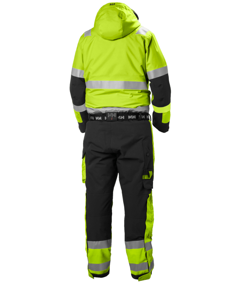 Een echt winterpak met hoge zichtbaarheid ontworpen en ontwikkeld in samenwerking met verschillende van onze professionele gebruikers. Het pak is volledig wind- en waterdicht met verschillende praktische kenmerken. Het heeft arm- en beensneeuwvangers, beenritsen tot de knieën, Life Pocket™, handzakken en een verlengde achterzijde voor een optimale pasvorm tijdens lange werkdagen