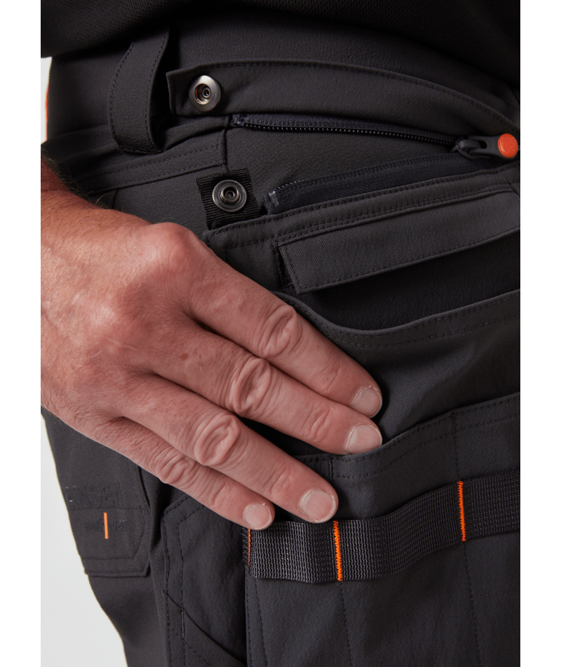 Ons meest robuuste aanbod in de ICU BRZ, de Bouwbroek, Klasse 1 is moderne werkkleding ontworpen met jouw behoeften in gedachten. Beweeg comfortabel door je dag in lichtgewicht vierweg stretchstof. Een inzetkruis en gearticuleerde knieën bieden mobiliteit. Versterkte gebieden zijn onder andere dubbel gevoerde en geweven bodems van hangzakken, een liniaalzak en de broekzoom - allemaal met Stretch Cordura® stof. Pas je pasvorm aan met verstelbare onderste beenknopen en een optionele verlenging van vijf cm. Toegang tot kniebeschermers van buitenaf voor snellere positioneringsaanpassingen. Elementen voor temperatuurregeling zijn onder andere ritssluitingen aan de zijnaad en laser-gesneden ventilatieopeningen aan de achterkant. Expertdetails zoals afritsbare hangzakken, geïntegreerde telefoonzak en een sluiting met bevestiger op de dijbeenzak zijn nieuwe werkkleding essentials. De beste bouwbroeken vertrouwen op expertise uit het veld voor ontwerpen die net zo hard werken als jij.