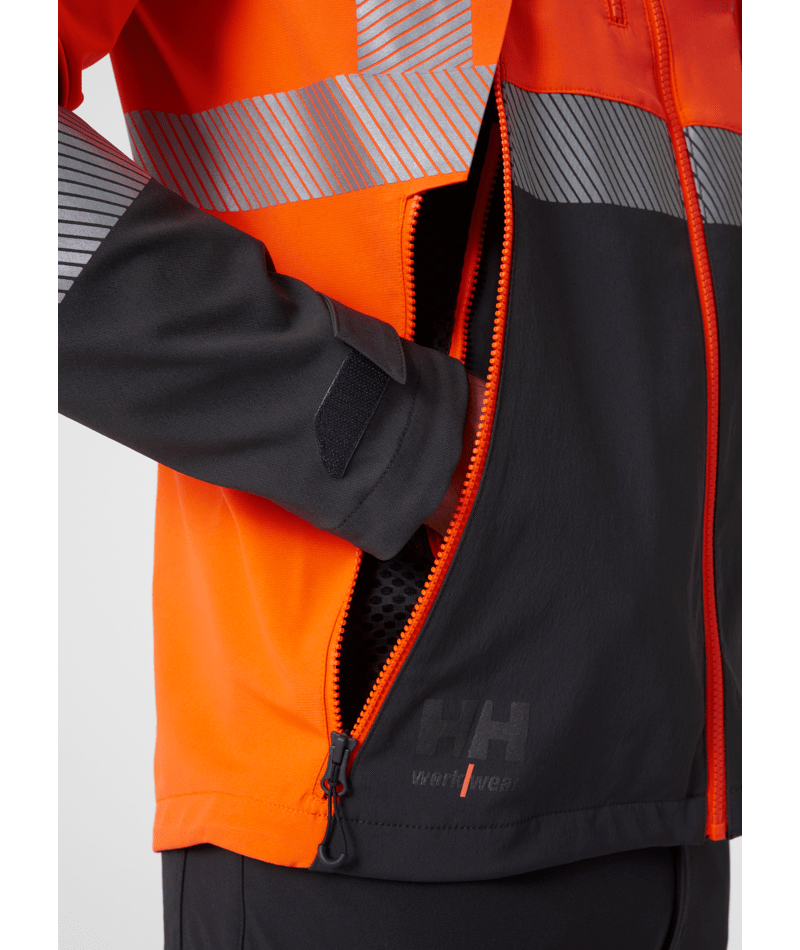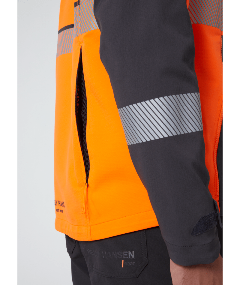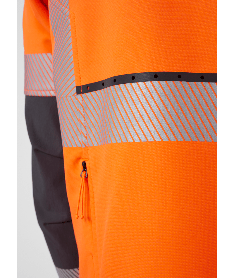 Het Helly Hansen Workwear ICU BRZ ontwerp voegt temperatuurregelingsfuncties toe aan deze high-tech, hoog zichtbare jas. Mesh ventilatieritsen aan de voorkant en zowel mechanische als laser-gesneden ventilatie aan de achterkant voegen ademend vermogen toe vanuit alle hoeken. Met lichtgewicht vierweg stretchstof en een gearticuleerde pasvorm beweegt de ICU BRZ Jas met je mee. Stretch Cordura® versterking voegt duurzaamheid toe zonder flexibiliteit op te offeren. Comfortkenmerken zijn onder andere een geborstelde polyester kraagvoering met kinbeschermer, een verlengde achterkant, en verstelbare manchetten en zoom. Toegang tot de zoomaanpassing via de handzakken vermindert vasthaakgevaren voor extra veiligheid op de werkplek. Inclusief robuuste YKK® ritsen aan de voorkant, op de borstzak, achterzak en handzakken.