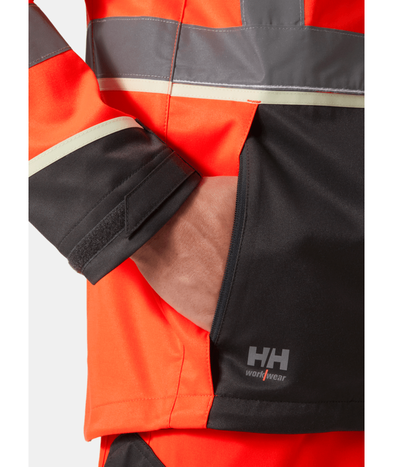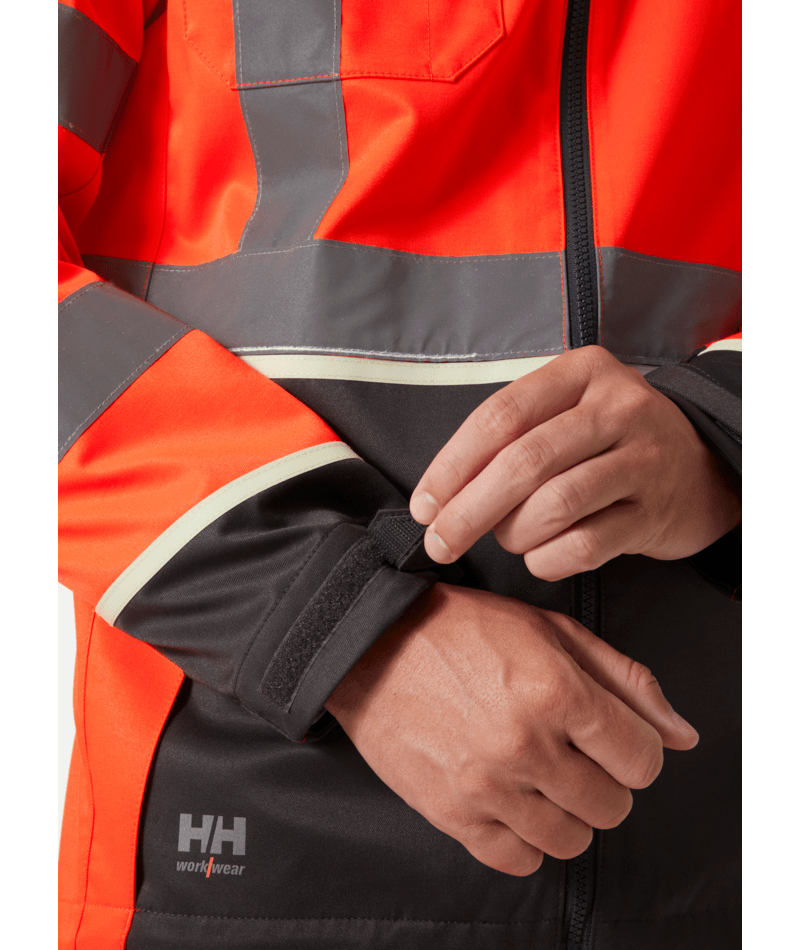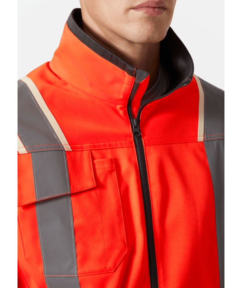 Helly Hansen Workwear UC-ME Jas houdt je de hele dag zichtbaar, comfortabel en beschermd. Gemaakt van tweeweg stretchstof, biedt deze hi-vis jas mobiliteit waar je het het meest nodig hebt. Naadloze schouders en gearticuleerde mouwen verbeteren de bewegingsvrijheid. Een verlengde achterkant beschermt je tegen het weer, zelfs als je buigt, reikt of zit. Blijf zichtbaar op de werkplek met brede reflecterende strepen en heldere stof die zelfs in omstandigheden met weinig licht opvalt. Pas je pasvorm aan met verstelbare manchetten en onderzoom. Toegang tot de zoomaanpassing is via de handzakken om vasthaakgevaar te voorkomen. Voorkom schuren met een kinbeschermer voor de voorrits. Items blijven veilig in een afsluitbare borstzak, YKK® ritszakken, of op de ID-kaarthouderlus