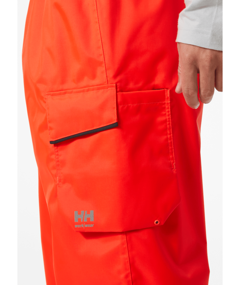 De Class 2 versie van de UC-ME SHELL PANT heeft volledige lengte hoog zichtbare stof, samen met brede reflecterende strepen. Werkbroeken blijven op hun plaats met een professionele elastische tailleband van hoge kwaliteit. Compatibiliteit met 79550 HH WW SUSPENDERS 2.0 biedt meer veiligheid en bewegingsvrijheid. Laarzen blijven bedekt en beschermd met de kniehoge rits, stormflap en sluiting. De handige dijbeenzak beschermt inhoud met beschermende flap en sluiting, terwijl een liniaalopening en een ID-kaartlus welkome toevoegingen zijn aan werkkleding.