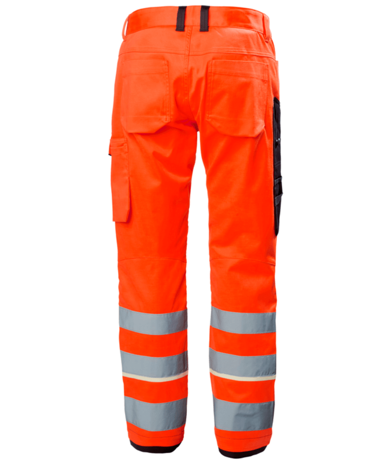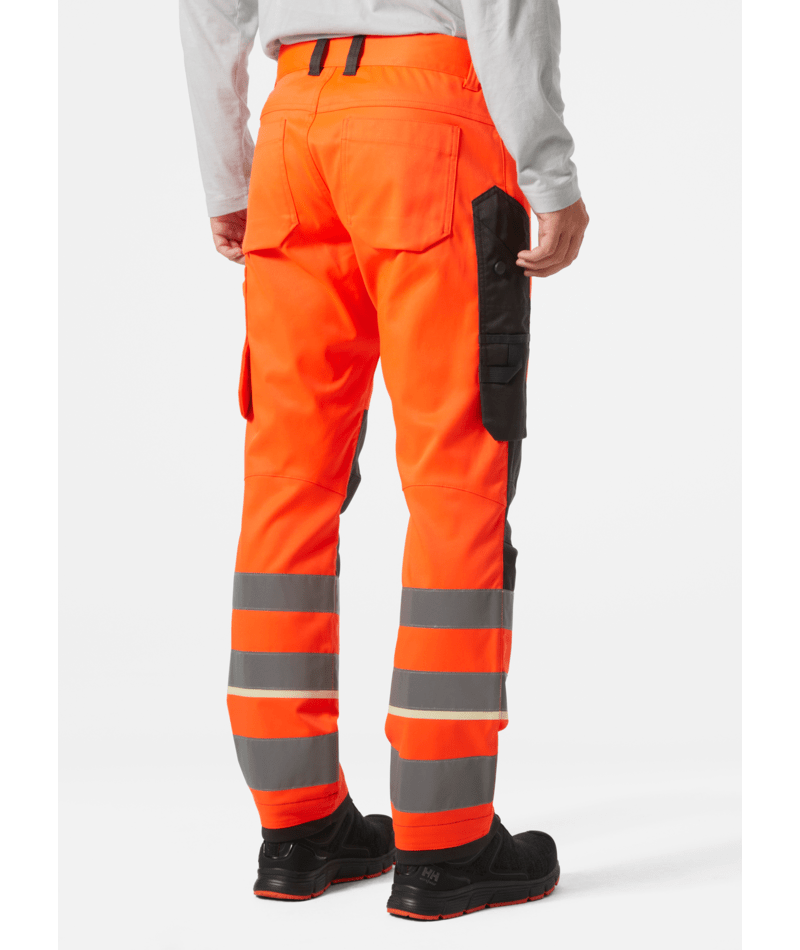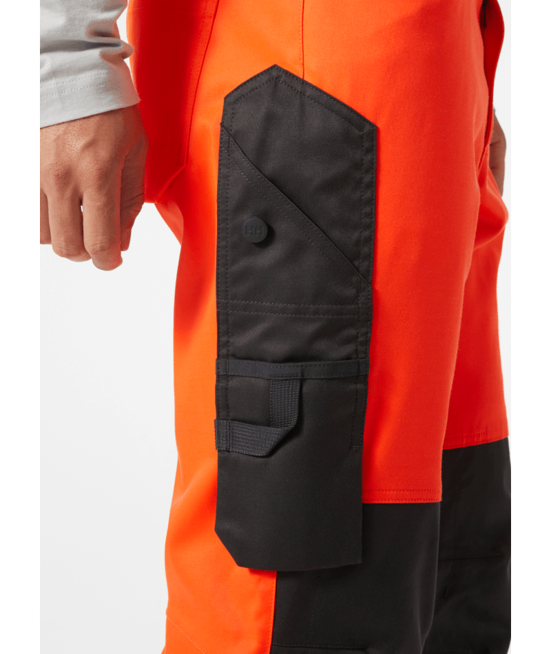 Robuuste werkkleding ontmoet high-tech stof en ontwerp in de Helly Hansen Workwear UC-ME WERKBROEK KLASSE 2. Beweeg comfortabel door je dag in tweeweg mechanische stretchstof met gearticuleerde knieën. Het inzetkruis voegt mobiliteit en stabiliteit aan het kledingstuk toe. Details van professionele kwaliteit, zoals plastic-gecoate metalen knopen en dijbeenzakken met gesloten sluitingen, voegen duurzaamheid toe. Pas je pasvorm aan door kniebeschermers of de lengte van de broekspijpen aan te passen. Kniebeschermerzakken zijn toegankelijk aan de binnenkant van het been. Expertdetails zoals een liniaalzak en een lus voor je ID voegen gemak toe aan je dag. Blijf veilig met hoog-zichtbare stof en brede reflecterende strepen op het onderbeen.