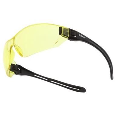 - Veiligheidsbril met gele lens en zwart montuur