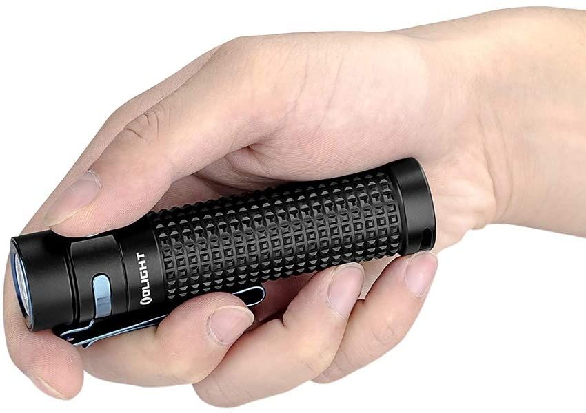Een fraaie geanodiseerde blauwe ring rond de kop van de lamp en de schakelaar maken de lamp direct herkenbaar als een echte Olight.