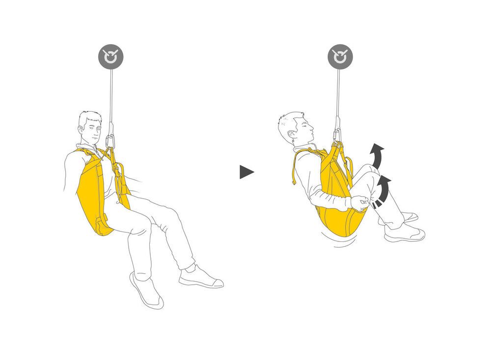 - Ergonomische vorm zorgt ervoor dat de geëvacueerde gemakkelijk in de driehoek kan zitten en maakt de ophanging comfortabeler dan met een klassieke evacuatie-driehoek