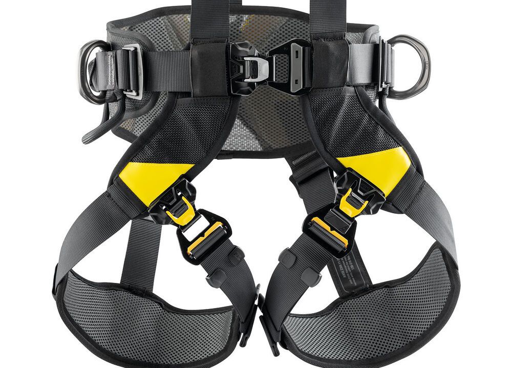 - Heupriem en beenlussen uitgerust met FAST LT PLUS gespen voor snel en eenvoudig vast- en losmaken zonder verlies van afstelling, zelfs met handschoenen aan; deze gespen maken het mogelijk het harnas zeer eenvoudig aan te trekken, met beide voeten op de grond