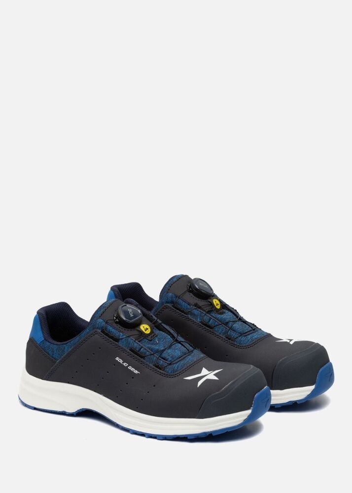 SOLID GEAR OCEAN, waarbij duurzaamheid samenkomt met lichtheid, comfort en flexibiliteit. De introductie van de gegoten polyurethaan-technologie in de tussenzolen, samen met een dunne rubberen buitenzool, resulteert in een zeer lichte en duurzame veiligheidsschoen. Bovenwerk met shell-functionaliteit zorgt voor een duurzaam en soepel product zonder onnodige stiksels. Metaalvrije bescherming in de neus en de penetratieplaat. BOA®-systeem voor eenvoudige instap en perfecte pasvorm. ESD functie volgens BS EN IEC 61340-4-3:2018. Bovenzijde: Volledig leer met TPU-versterkingen Buitenzool: Oliebestendige en antislip rubberen buitenzool Tussenzool: Gegoten PU Inlegzool: Zeer goed ademend, vochtafvoerend en antibacterieel PU-schuim Kenmerk: BOA® Fit System Pasvorm: Breed Maten: 36-48 Veiligheidsstandaard: EN ISO 20345:2011 S1P, SRC Bescherming: Composiet zool en glasvezel neus