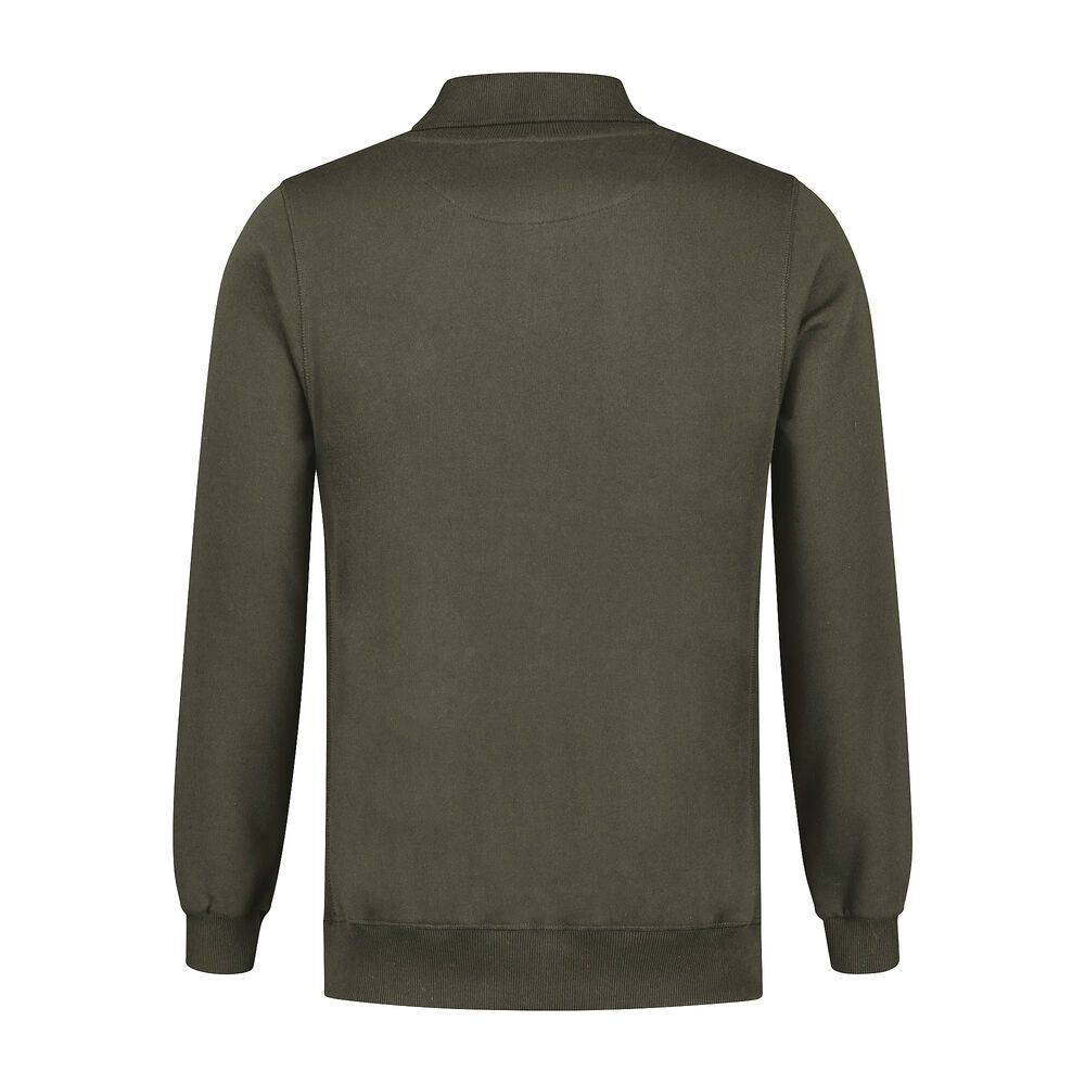 Polosweater, 50% katoen / 50% polyester, 320 gr/m², french terry met geruwde binnenzijde, modern fit met polokraag, 3-knoopsluiting, halve maan en zware 2x2 rib in kraag, zijpanelen, manchetten en tailleband.