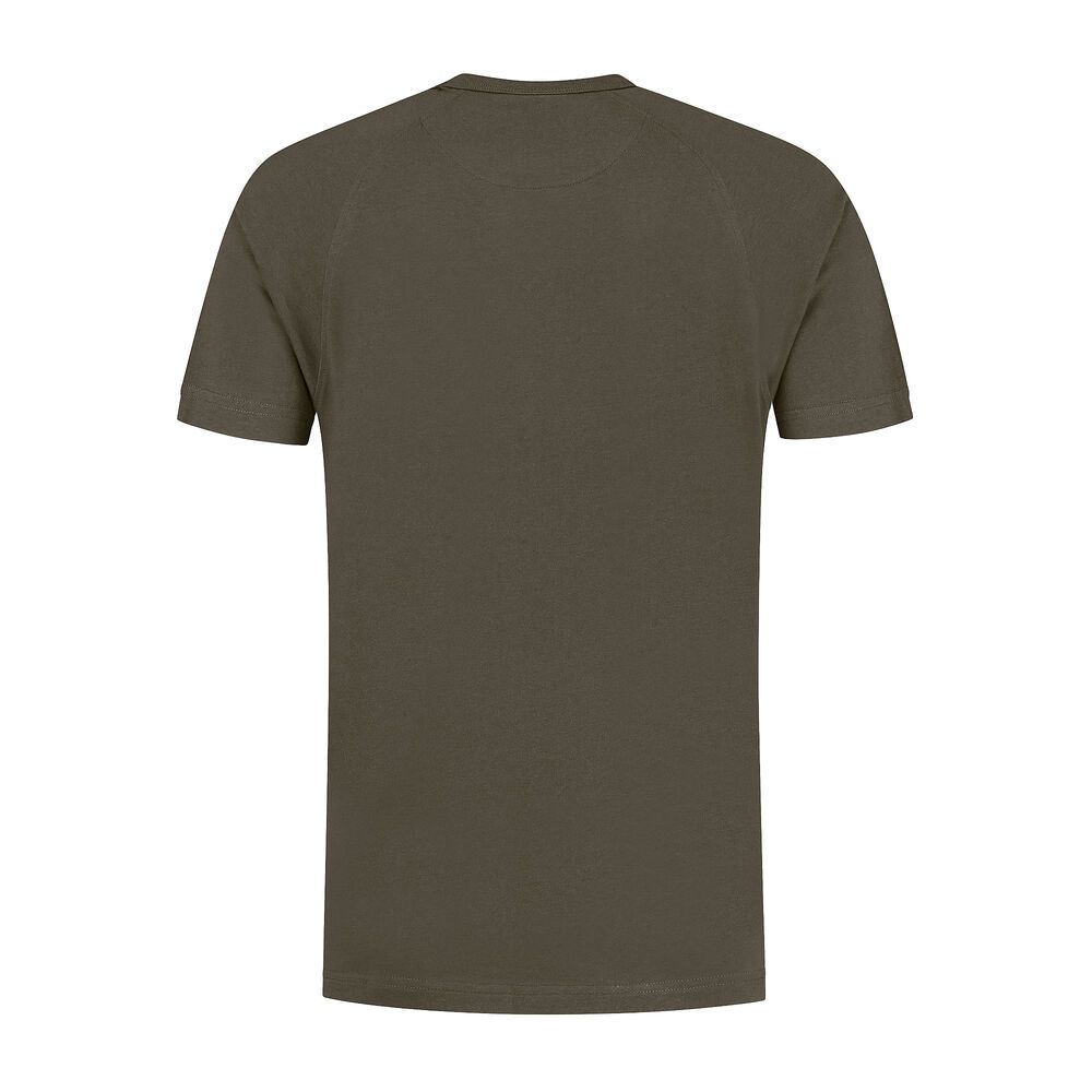 T-shirt, 80% bio katoen (GOTS) / 20% rPET polyester, 190 gr/m2, single jersey, modern fit met ronde hals, kraag met fijne rib afwerking en voorzien van halve maan, voorzijde T-shirt rechte mouw inzet, rugzijde met raglan mouw inzet. (Sport Grey : 90% bio katoen (GOTS gecertificeerd) / 10% viscose)