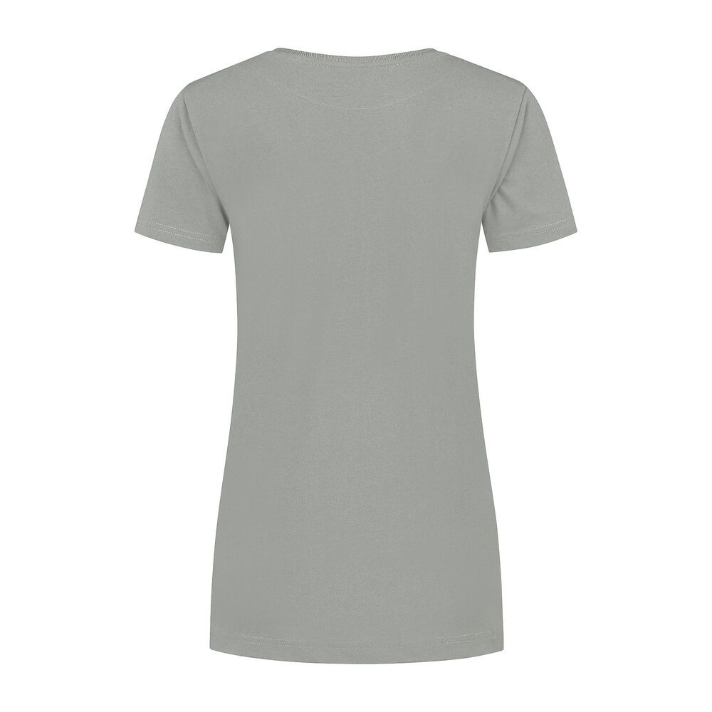 T-shirt, 50% gekamd katoen / 50% polyester, 180 gr/m², single jersey, ladies fit met korte mouwen, schouders voorzien van een dubbele laag stof voor extra versteviging en halve maan, V-hals met 1x1 ribboord en antibacteriële afwerking. (Sport grey is melange: 85% gekamd katoen / 15% viscose).