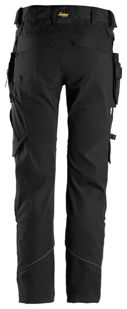 Een werkbroek gemaakt van duurzame en elastische ripstop stof. De broek heeft ook een 4-weg stretch inzet in het kruis voor betere flexibiliteit en ritsventilatie aan de binnenzijde van de dijen. Bovendien dragen de afneembare holsterzakken bij aan het flexibele hightech karakter van de broek.