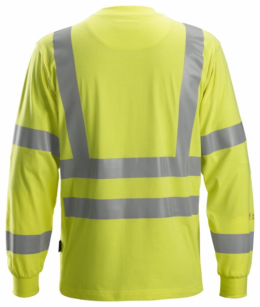 High-Vis T-shirt met lange mouwen, gemaakt van zachte stoffen die glad aanvoelen voor uitzonderlijk comfort. Dit kledingstuk biedt bovendien een basisbescherming tegen hitte en vuur, elektrostatische ontlading en elektrische vlambogen en is een perfecte eerste laag in een outfit voor hoge bescherming.