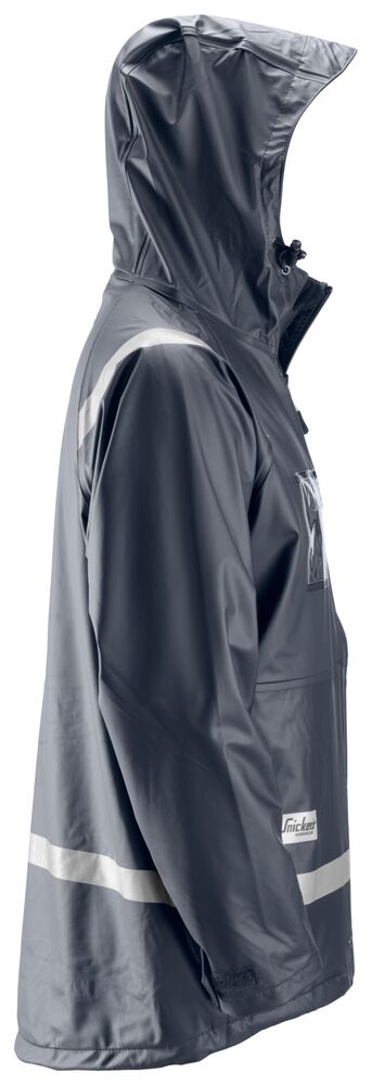 Versla de regen. Draag deze volledig waterdichte PU-gecoate regenjack met gelaste naden voor een 100% droge werkdag. Gemaakt van een soepele en rekbare stof voor superieur comfort. Voldoet aan EN 343.