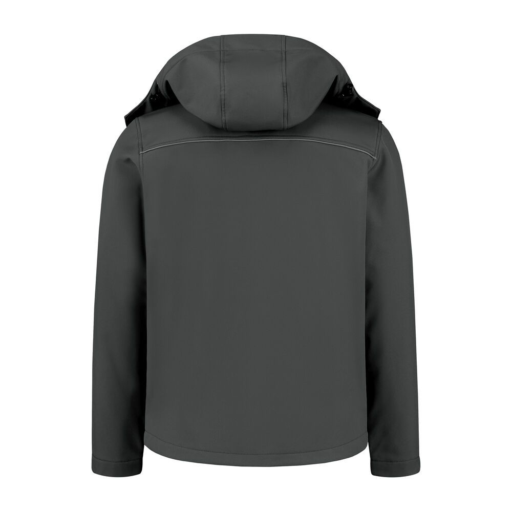 Softshelljas basis, 96% polyester / 4% spandex, 300 gr/m2, PU membraam met fleecebinnenlaang, capuchong, borstzak met rits, 2 steekzakken met rits, verstelbare manchetten, reflectiebies op de borst en rug.