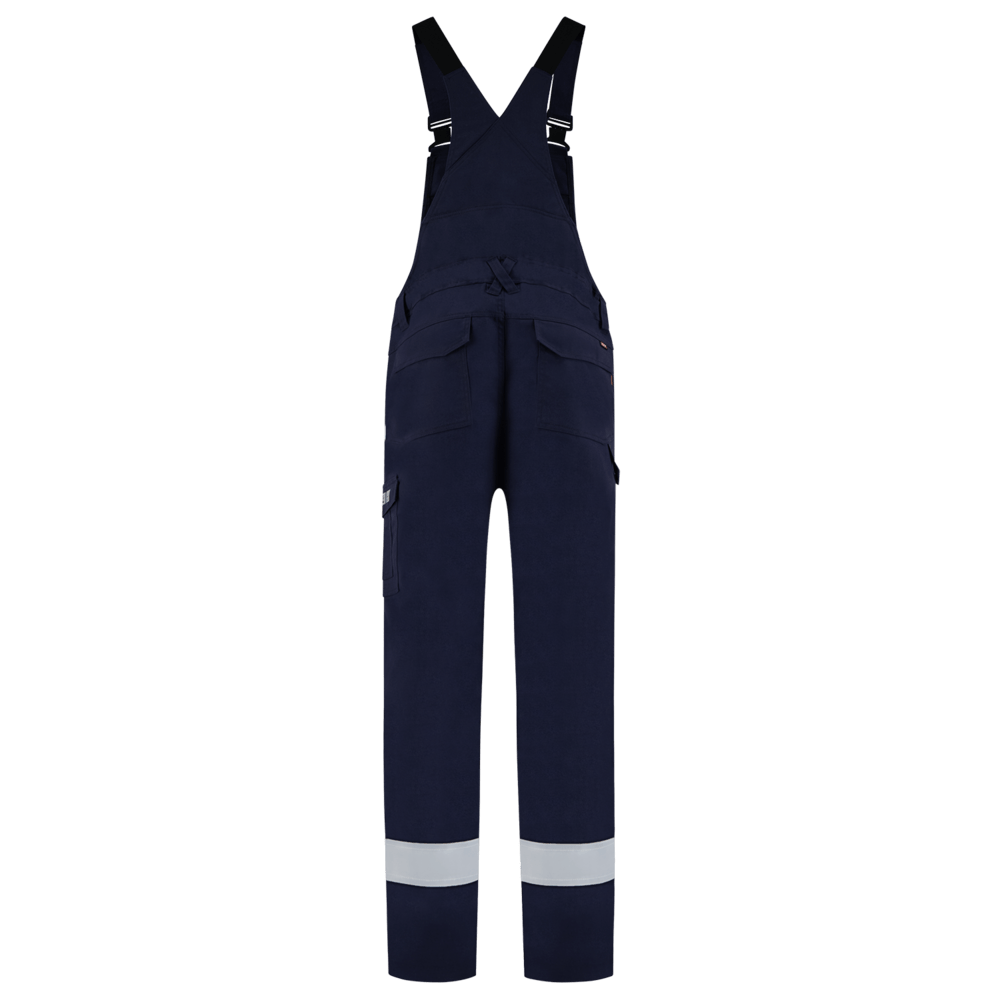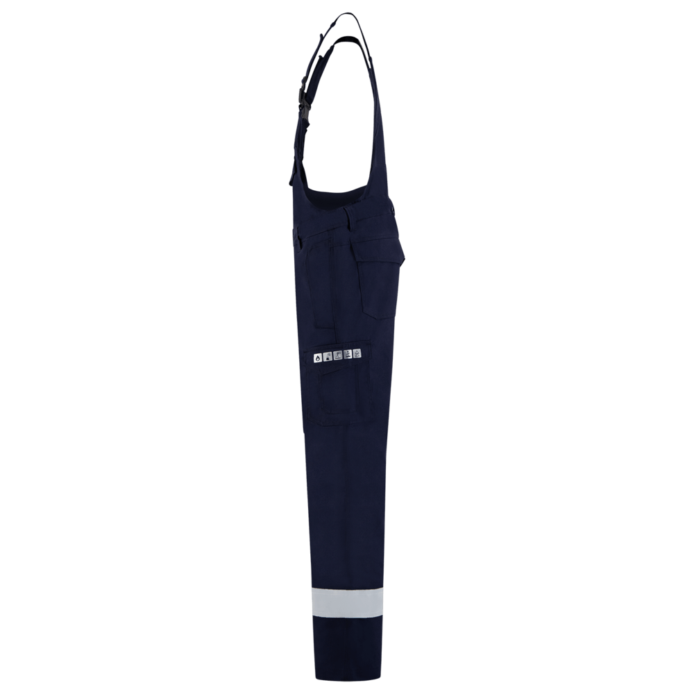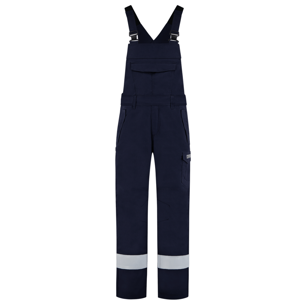 De Amerikaanse Overall Multinorm is vervaardigd uit 74% katoen, 25% Polyester en 1% andere vezels met een doekgewicht van 320 g/m2. Deze overall is vlamvertragend, antistatisch, beschermt tegen vloeibare chemicaliën, beschermt bij lassen en aanverwante werkzaamheden én beschermt tegen thermische gevaren van een elektrische vlamboog. Bovendien zorgen de reflectiebanden aan de onderkant van de broekspijp voor extra zichtbaar bij schemer, neerslag en tijdens de nacht. De overall biedt veel opbergmogelijkheden door de diverse zakken. De schouderbanden zijn verstelbaar en dus naar wens aan te passen. Aan de rechter broekspijp zit een hamerlus en het broekgedeelte is voorzien van inpandige kniestukken. De Amerikaanse Overall Multinorm is op 60 graden wasbaar en kan in de droger. Bovendien is dit artikel industrieel wasbaar t/m 75 graden celsius volgens de norm EN ISO 15797. Zoals u van ons gewend bent is dit artikel verkrijgbaar in een brede maatrange, van maat 42 t/m 66. De uitneembare zoom van de broek biedt 6 cm extra lengte.