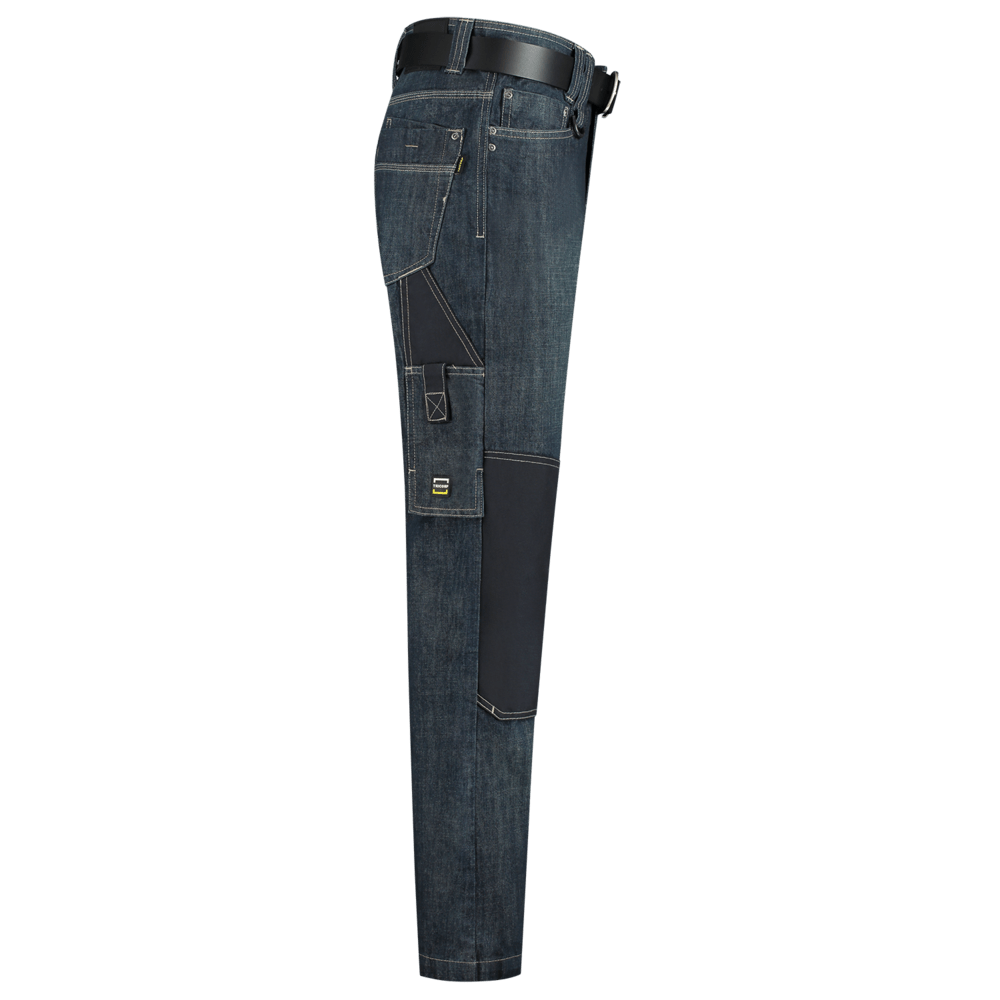 De Jeans Werkbroek is een extreem slijtvaste spijkerbroek en daarom in het bijzonder geschikt om te dragen als werkbroek. Door het gebruik van Cordura kniestukken is de broek bestendig tegen intensief gebruik. Cordura wordt gemaakt van nylon 6,6-vezels en staat erom bekend dat het tegen zware belastingen bestand is. De handige hamerlus is ook van Cordura gemaakt.