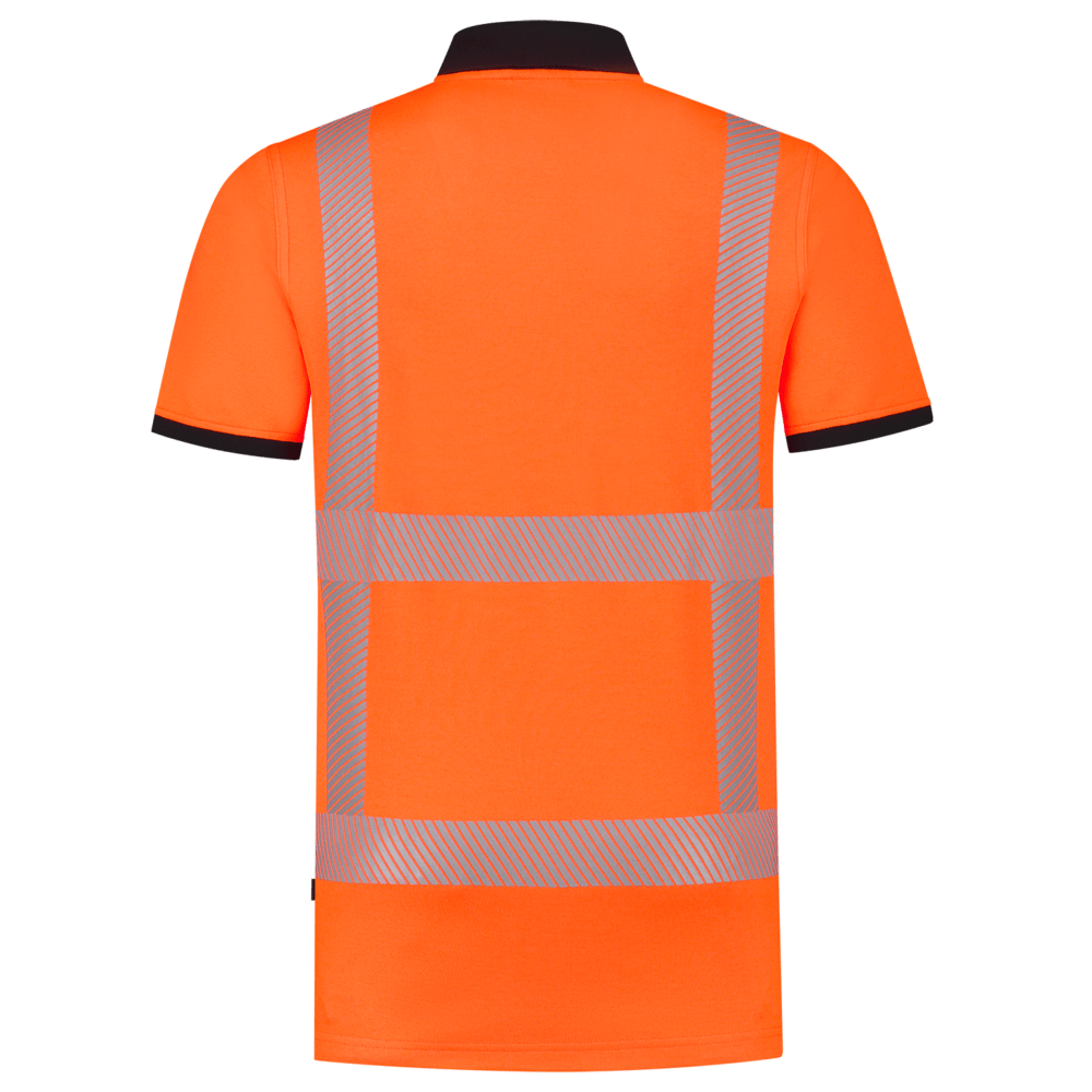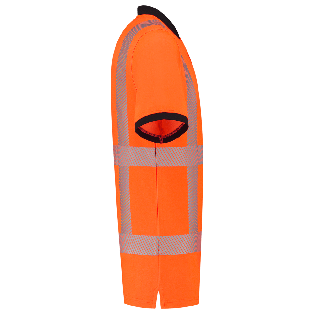 Het poloshirt draagt erg comfortabel dankzij het binnendoek van biologisch katoen en het recycled polyester buitendoek. De reflective striping is gesegmenteerd en verhoogd hierdoor het draagcomfort. Daarnaast is het bevorderlijk voor de levensduur van het artikel, omdat deze striping niet snel scheurt. Onder de oksels is extra ademend vermogen toegevoegd door het gebruik van mesh doek.
