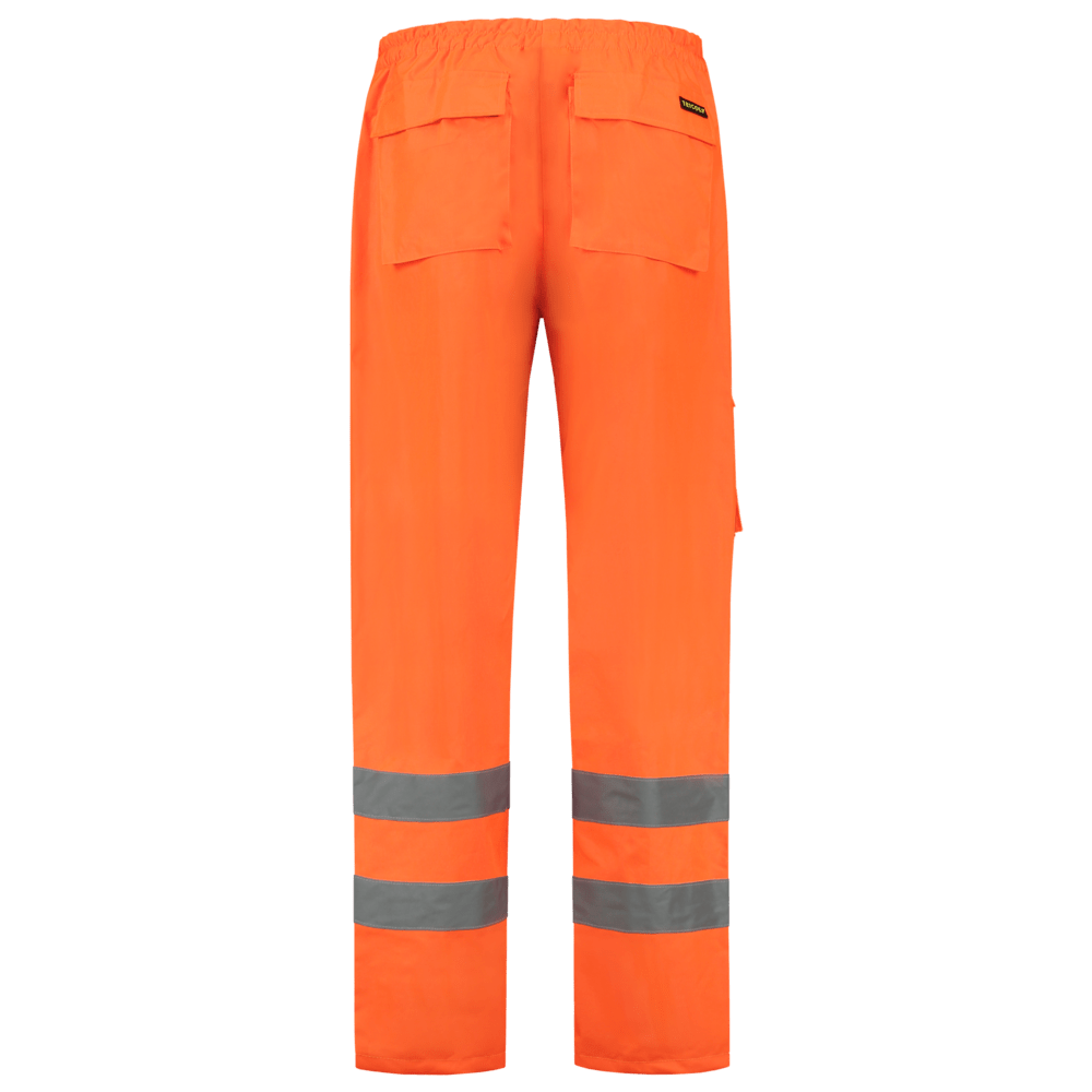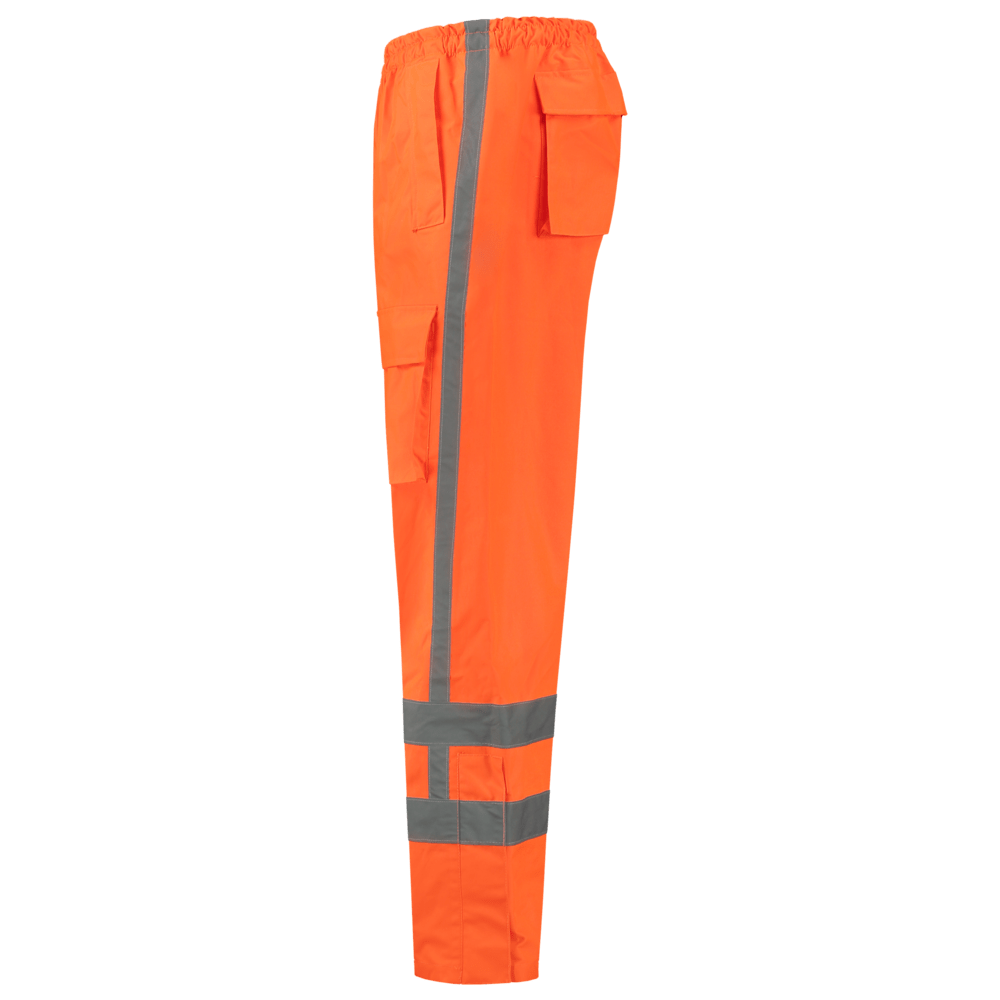 Deze Regenbroek is volledig uitgevoerd conform de richtlijnen van Rijkswaterstaat. Het doek is in een 100% Oxford polyester dat aan de binnenzijde voorzien is van een PU coating waarbij de naden zijn getaped. Derhalve is deze Regenpantalon gecertificeerd conform de EN 343 / Klasse 3:3 norm hetgeen de hoogste klasse is voor deze norm en derhalve de optimale combinatie biedt van ademendheid en wind- en waterdichtheid. Naast de Richtlijnen van Rijkswaterstaat is deze Regenbroek uitgevoerd in de Hoge Zichtbaarheidsnorm EN ISO 20471:2013 / Klasse 1. De striping is gestikt aangebracht en verder is deze Regenbroek voorzien van praktische en ruime dijbeenzakken. Tevens is er de mogelijkheid tot broekspijpverwijding door de aan de onderzijde van beide broekspijpen aangebrachte afgeschermde lange ritssluiting. Deze regenbroek is verkrijgbaar in zowel Fluor Orange als Fluor Yellow.