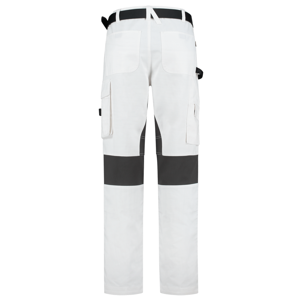 Deze hoogwaardige schildersboek heeft een aansluitende pasvorm. Met soepel mechanische stretch delen bij de kuiten en in het kruis is de bewegingsvrijheid in deze broek optimaal. De broek is in de taille verstelbaar middels een elastisch verstelbare tailleband. De Cordura kniestukken op de broek voor het plaatsen van kniekussens zijn donkergrijs geaccentueerd. De schildersbroek is uitgerust met met veel zakken om gereedschap en toebehoren zoals kwasten en steekmessen in te kunnen opbergen wanneer deze niet nodig zijn. Zo hoef je nooit meer je ladder af om een andere kwast te pakken! Dit product is verkrijgbaar in standaardmaten, lengtematen en korte maten.