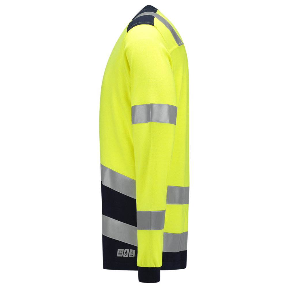 Het T-shirt Multinorm Bicolor uit de Tricorp Safety collectie is vervaardigd uit 60% modacryl, 39% gekamd katoen en 1% andere vezels met een doekgewicht van 200 gr/m2. De EN ISO 20471 certificering zorgt voor een hoge zichtbaarheid bij dag schemer en nacht. Naast deze certificering is dit product gecertificeerd volgens EN ISO 11612 (bescherming tegen hitte en vlammen) en EN 1149 (bescherming tegen elektrostatische eigenschappen).