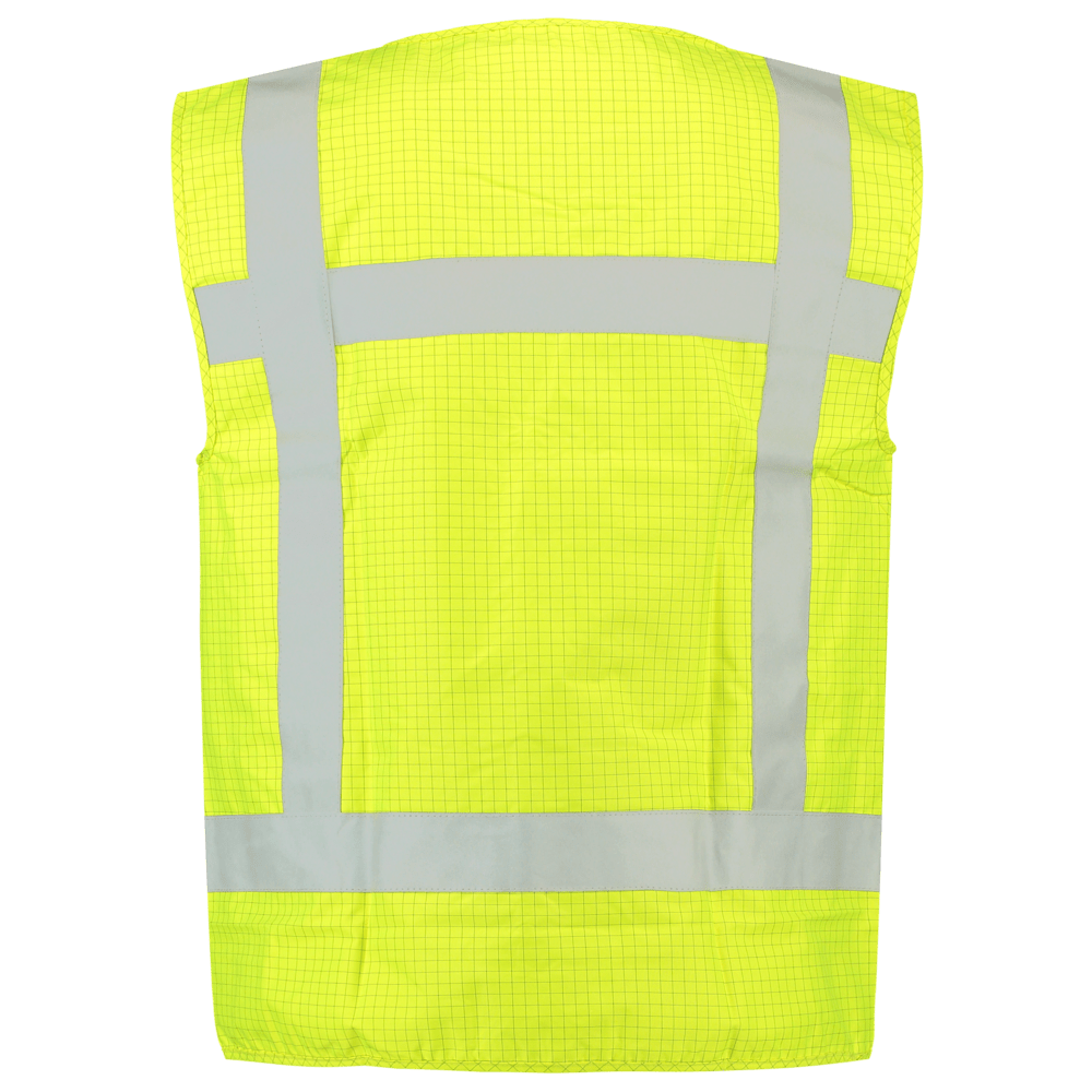 Dit veiligheidsvest biedt een zeer veelzijdige oplossing voor personen die met uiteenlopende veiligheidsrisico’s te maken kunnen krijgen. Het vest voldoet aan de EN ISO 20471:2013, klasse 2 normering voor hoge zichtbaarheid. Het doek voldoet aan de EN1149-3:2004 normering voor antistatische kleding en de EN ISO 14116:2008 normering voor vlamvertragende kleding. Bovendien is dit veiligheidsvest uitgevoerd conform de richtlijnen van Rijkswaterstaat waarbij de striping gestikt is. Dit veiligheidsvest is beschikbaar in de kleuren fluor orange en fluor yellow.