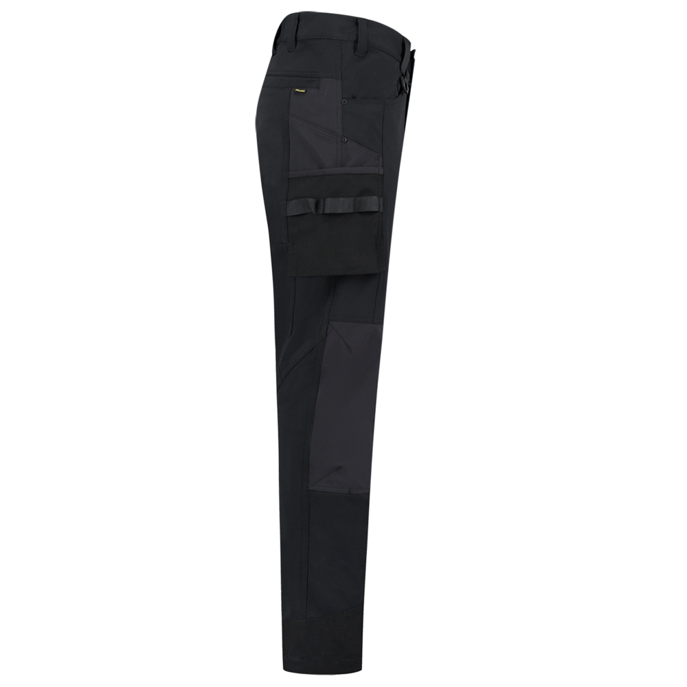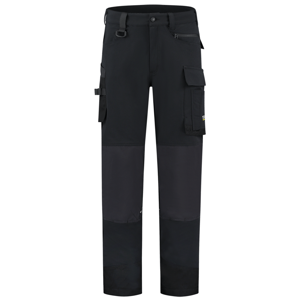 De stretch werkbroek heeft een voorgevormde pasvorm wat de broek extra comfortabel maakt. De slijtvaste stof Cordura® verstevigt de broek op de volgende plaatsen: kniestukken, dijbeenzakken en uiteinde broekspijpen. De kniestukken kunnen met een rits worden geopend om kniekussens toe te voegen. De verschillende zakken bieden voldoende opbergmogelijkheden voor al je materiaal. Heb jij lange benen? Deze stretch werkbroek heeft een dubbele zoom voor 6 centimeter extra lengte. Op het achterbeen en de zipperpuller vind je reflecterende accenten voor extra zichtbaarheid. Werk je met een ID-houder? Dan kun je die bevestigen aan de ribstape loop onder de klep van de dijbeenzak.
