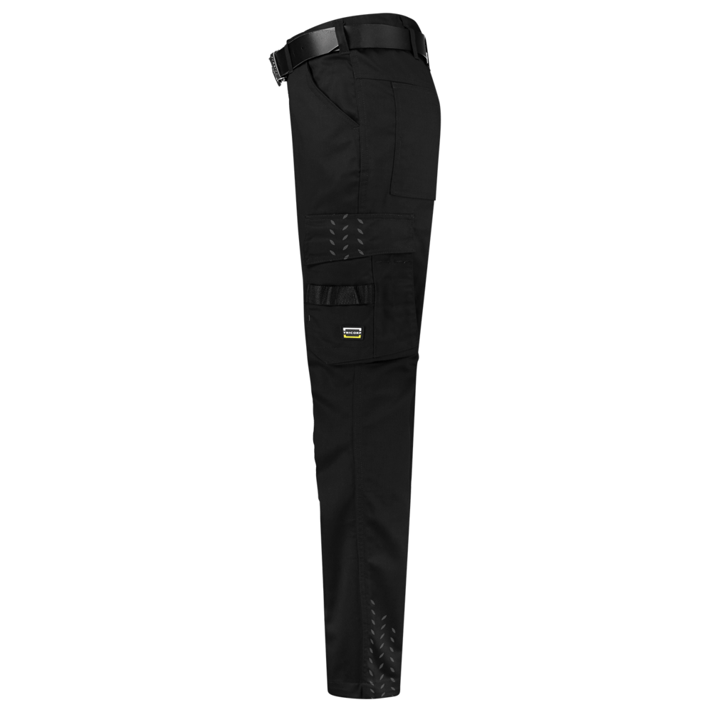 Ook aan de dames wordt gedacht! Werk je als vrouw in de logistieke sector en ben je op zoek naar een lichtgewicht dames werkbroek met een vrouwelijke pasvorm, dan is de werkbroek Twill een goede keuze. Deze worker heeft een verhoogd achterpand en een verstelbare tailleband. De broek wordt gesloten door middel van een verdekte knoop, waardoor je tijdens het werken niet gehinderd wordt door een uitstekende knoop. De worker biedt met diverse zakken genoeg opbergruimte voor het gereedschap dat je bij je draagt tijdens het uitvoeren van je werk. Een leuk detail is de reflectieprint op de pijpen.