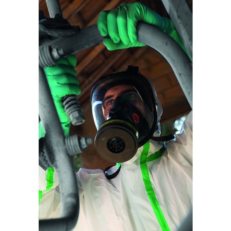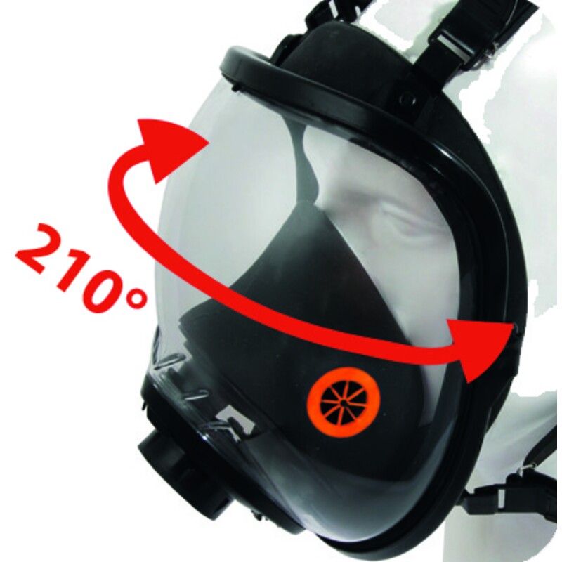 Volgelaatsmasker met panoramisch zicht, uitgerust met siliconenbanden voor gemakkelijk gebruik met andere PBM's, speciaal voor chemische en deeltjesomgevingen